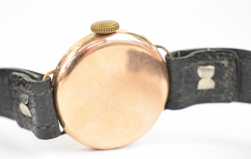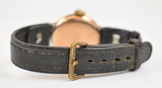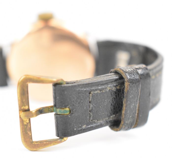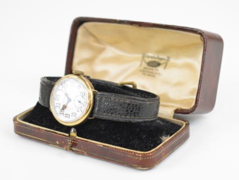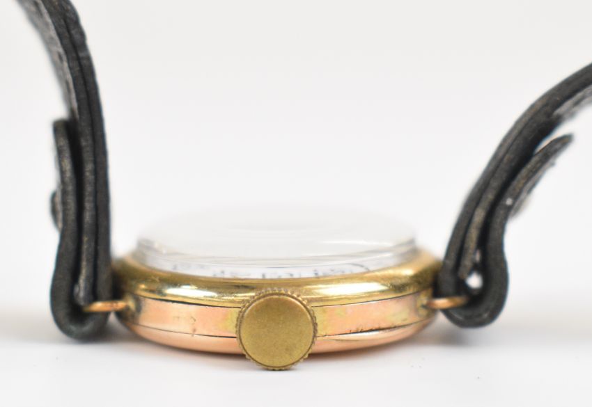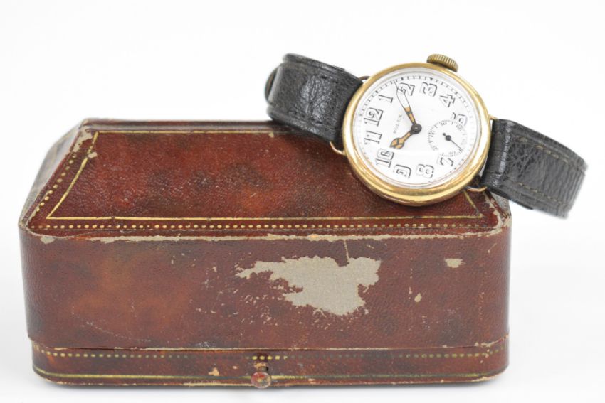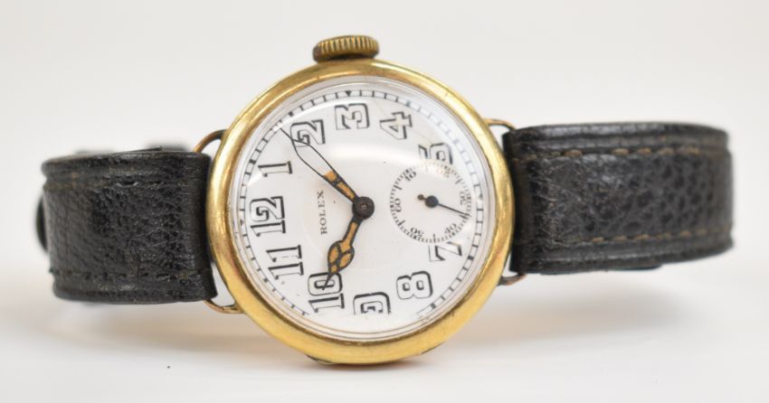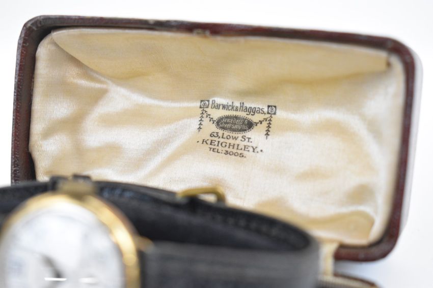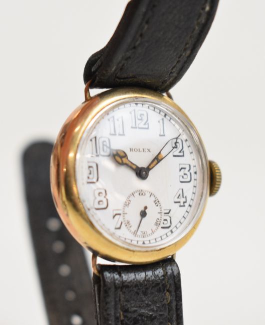 Rolex 9ct gold gentleman's wristwatch with subsidiary seconds dial, luminous blued cathedral hands, Arabic numerals, white dial and signed 15 jewel movement, case diameter 28mm, serial number 24753, in Barwick & Haggas of Keighley box.