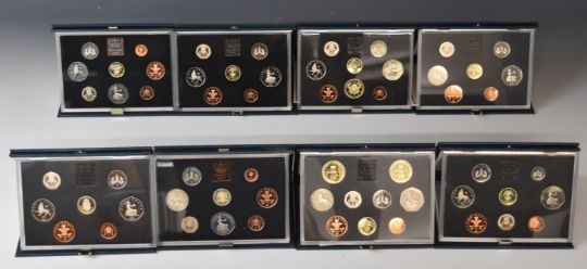 Eight Royal Mint United Kingdom proof coin collection sets 1983-1990 inclusive