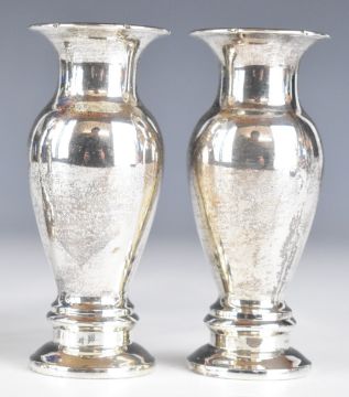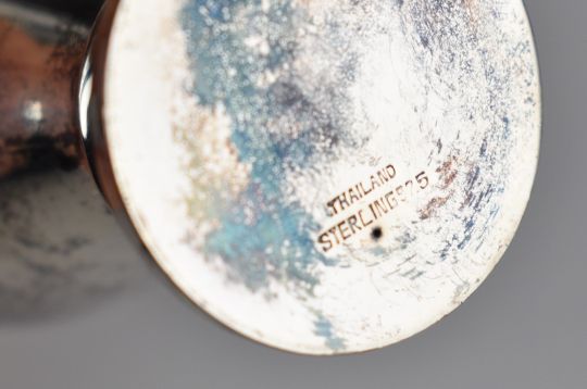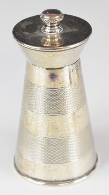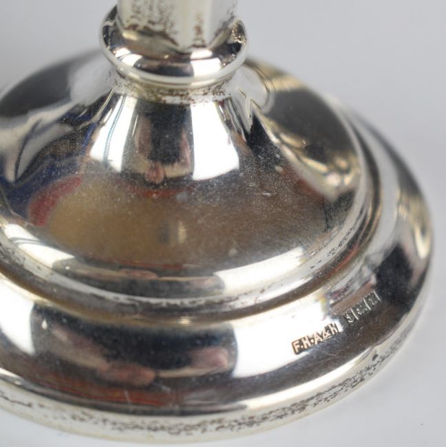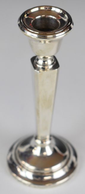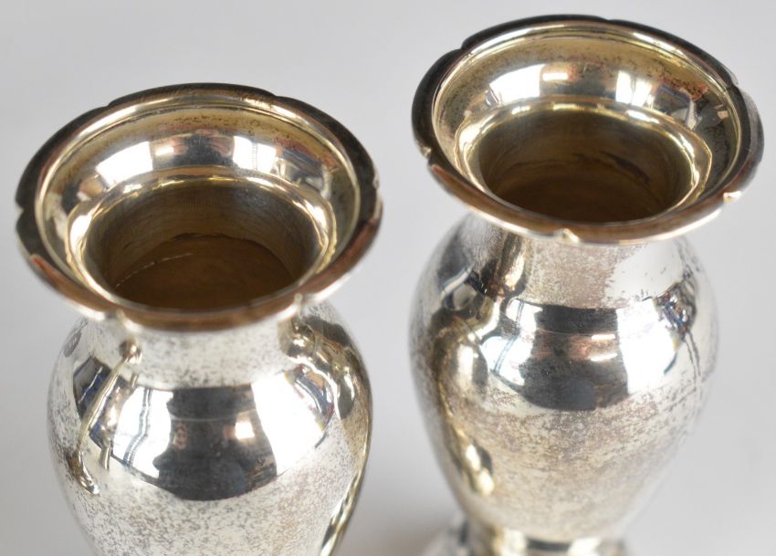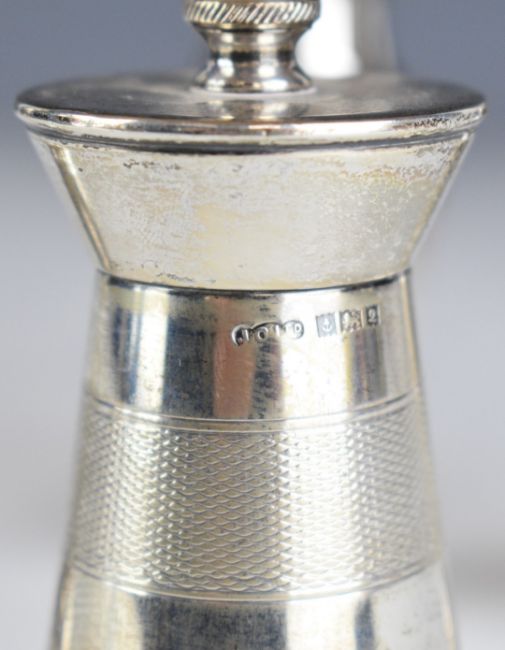 Hallmarked silver pepper or salt grinder, hallmarked silver candlestick and a pair of weighted bulbous vases marked Thailand sterling 925, height of candlestick 15cm