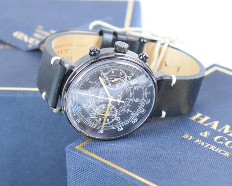 A collection of jewellery including Swarovski ring, Hammond & Co watch, silver ring, three pairs of Swarovski earrings, Charles Horner cufflinks with hammered decoration, 9ct gold cufflinks (6.1g), silver pocket watch, etc