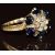 An 18ct gold ring set with a cluster of diamonds surrounded by round cut sapphires, 3.2g, size R