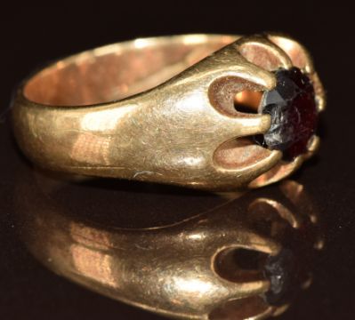 A 9ct gold ring set with a garnet, 7.5g, size P