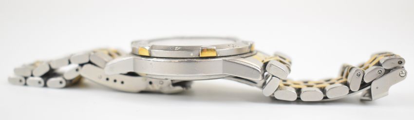 Tag Heuer wristwatch ref. WD1221-K-20 with date aperture, silver granite dial, luminous hands and hour markers, stainless steel case and quartz movement, on bi-metal bracelet, case diameter 37mm, serial number RC8440.