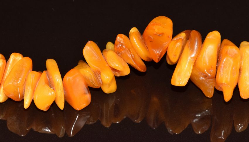 Baltic amber necklace made up of irregular beads, 110g, 70cm