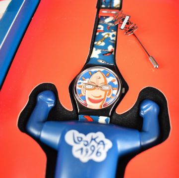 Three Swatch The Club Edition wristwatches Lucky 7 SKZ116, Garden Turf SKZ103 and Looka GZ700, all in original boxes.
