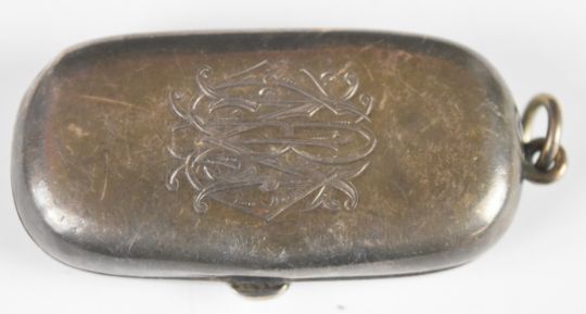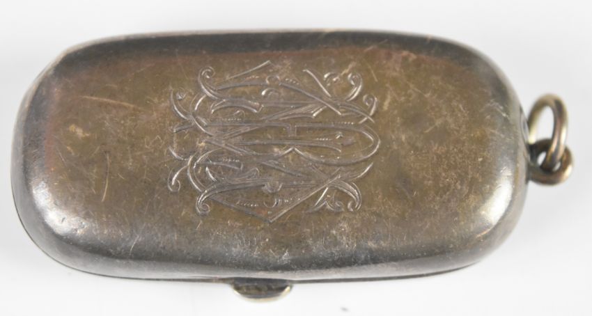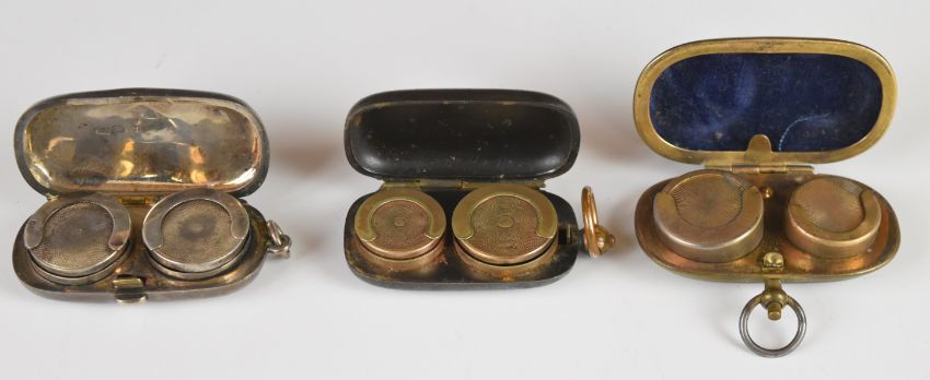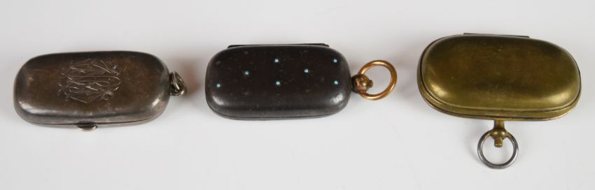 Three sovereign cases, one an Edward VII hallmarked silver double case, Chester 1905, maker William Neale & Sons, length 6cm, weight 30g, the others to suit half and full sovereigns, one with blue cabuchon spot decoration