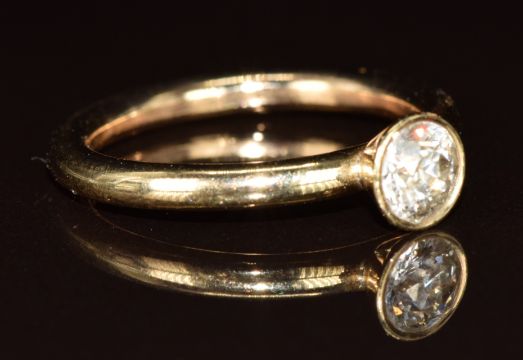 A 9ct gold ring set with a round cut diamond of approximately 0.55ct, 3.6g, size N