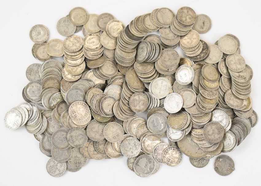 Approximately 670g pre 1920 British silver coinage, mainly three pence examples