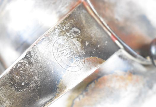 Georgian hallmarked silver teapot with gadrooned edge and Welsh interest inscription to base, London 1810, maker Rebecca Emes & Edward Barnard I, length 29cm, weight 678g all in