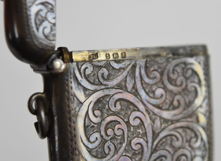 Pair of Victorian hallmarked silver open salts and spoons, Birmingham 1883, maker Hilliard & Thomason, hallmarked silver mustard with blue glass liner and an Edward VII hallmarked silver vesta, Birmingham 1905, maker Joseph Gloster Ltd, weight of all items 128g
