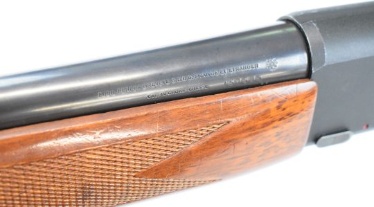 Perfex 12 bore 3-shot semi-automatic shotgun with chequered semi-pistol grip and forend, sling mounts, vented rib and 28 inch barrel, overall length 123cm, length of pull 35cm, serial number 151535. PLEASE NOTE THAT A VALID RELEVANT SHOTGUN CERTIFICATE IS REQUIRED TO VIEW OR PURCHASE THIS LOT AND FOR ALL SHOTGUNS OR RIFLES PLEASE ENSURE YOU HAVE THE RELEVANT CERTIFICATE BEFORE BIDDING.