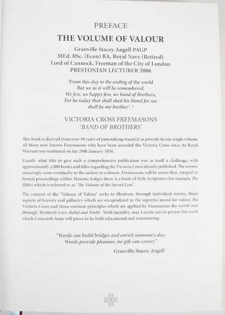Volume of Valour by Granville S Angell Freemason, Victoria Cross Winners first edition book, signed by the author