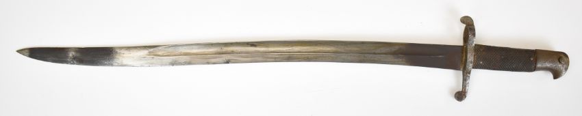 British 1856/58 pattern bayonet with external leaf spring, 58cm yataghan fullered blade and scabbard. PLEASE NOTE: WE ARE NOT ABLE TO OFFER OUR USUAL POSTAGE SERVICE FOR THIS LOT
