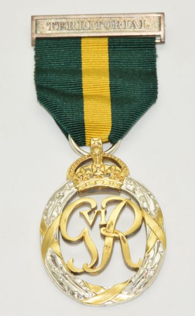 British Army George VI Territorial Efficiency Decoration Medal, 1950 to reverse, with fitted box