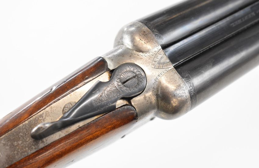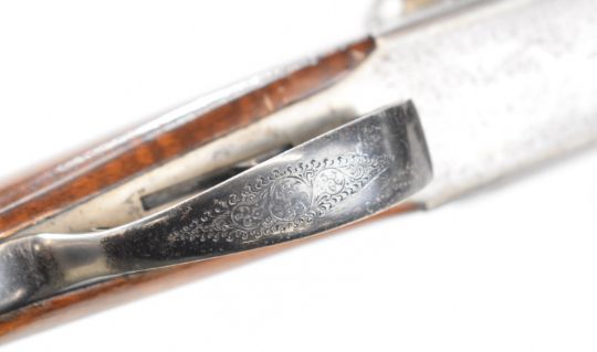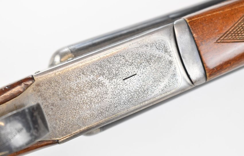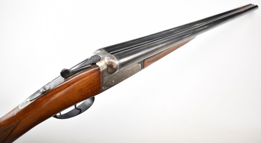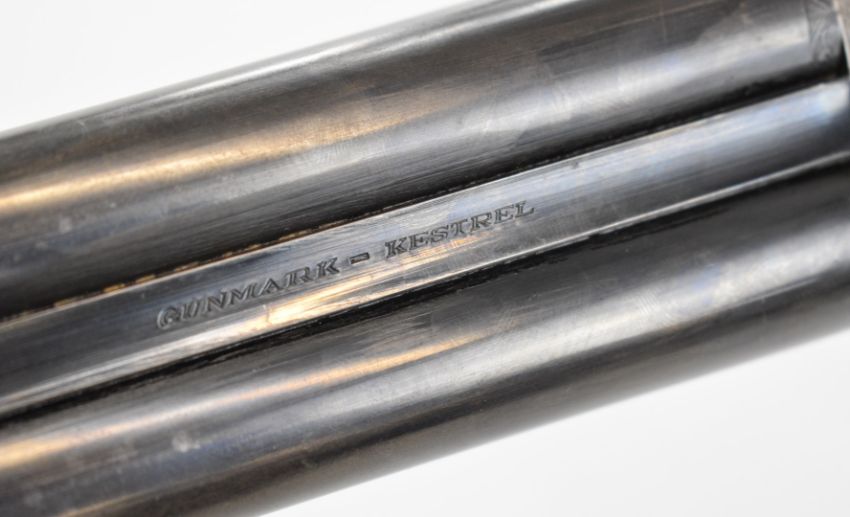 Gunmark Kestrel 12 bore side by side shotgun with named and engraved locks, engraved underside, trigger guard and thumb lever, chequered grip and forend, double trigger and named 27.25 inch barrels choked improved cylinder and ½, overall length 113cm, length of pull 37.5cm, serial number 271278. PLEASE NOTE THAT A VALID RELEVANT SHOTGUN CERTIFICATE IS REQUIRED TO VIEW OR PURCHASE THIS LOT AND FOR ALL SHOTGUNS OR RIFLES PLEASE ENSURE YOU HAVE THE RELEVANT CERTIFICATE BEFORE BIDDING.