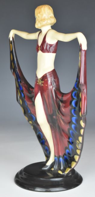 Josef Lorenzl for Goldscheider Art Deco figurine 'Butterfly Girl', model number 6399, with incised and printed marks to base, H29cm.