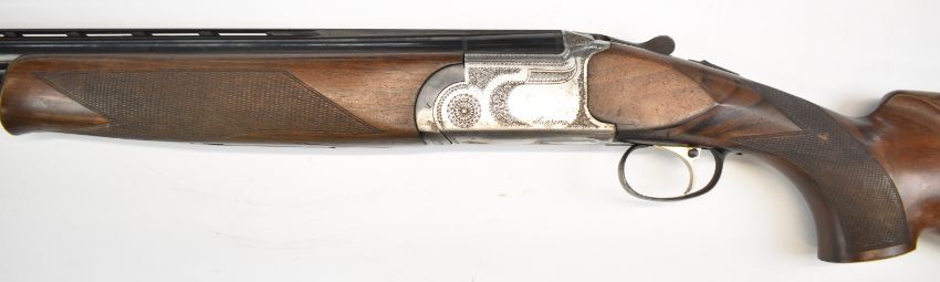 Armi Silma Supreme 12 bore over and under ejector shotgun with named and engraved locks, engraved trigger guard, underside, top plate and thumb lever, chequered semi-pistol grip and forend, single trigger, vented top and central ribs and 30 inch multi-choke barrels, overall length 119.5cm, length of pull 36cm, serial number 33199. PLEASE NOTE THAT A VALID RELEVANT SHOTGUN CERTIFICATE IS REQUIRED TO VIEW OR PURCHASE THIS LOT AND FOR ALL SHOTGUNS OR RIFLES PLEASE ENSURE YOU HAVE THE RELEVANT CERTIFICATE BEFORE BIDDING.