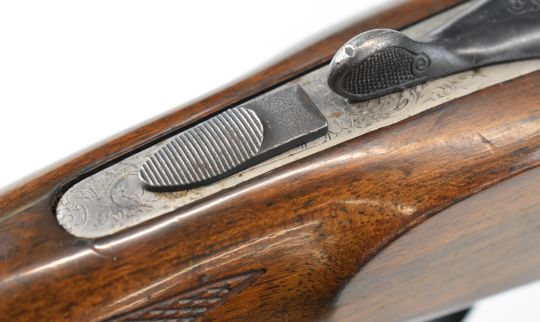 Breda 12 bore over and under shotgun with engraved locks, underside, trigger guard, top plate and thumb lever, chequered semi-pistol grip and forend, double trigger, vented top and central ribs and 28 inch multi-choke barrels, overall length 115cm, length of pull 37.5cm, serial number 161966. PLEASE NOTE THAT A VALID RELEVANT SHOTGUN CERTIFICATE IS REQUIRED TO VIEW OR PURCHASE THIS LOT AND FOR ALL SHOTGUNS OR RIFLES PLEASE ENSURE YOU HAVE THE RELEVANT CERTIFICATE BEFORE BIDDING.