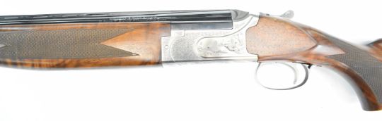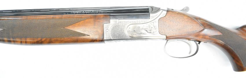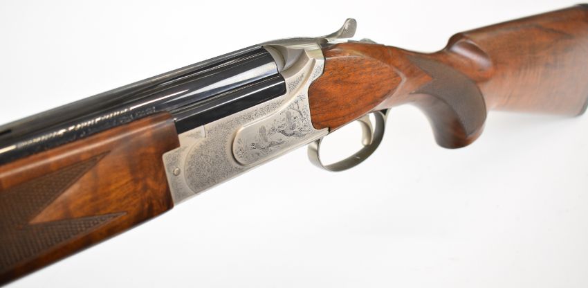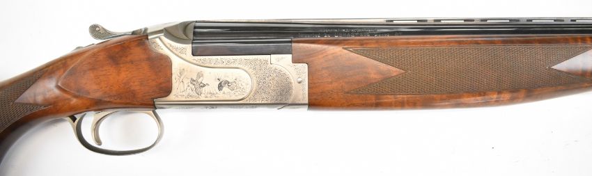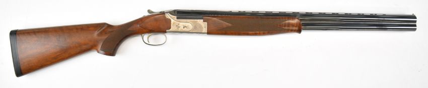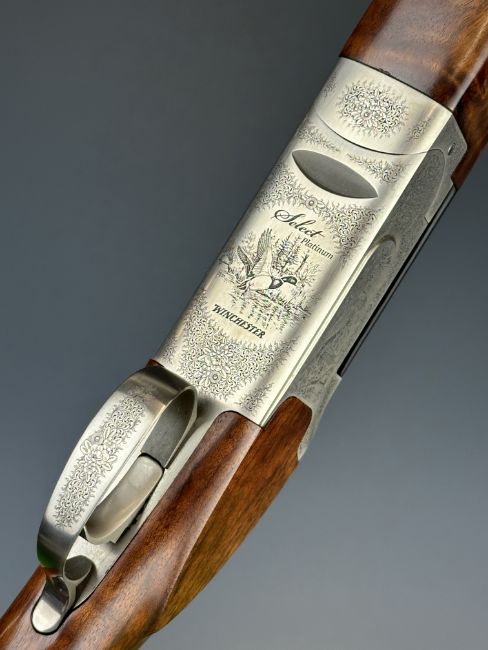 Winchester Select Platinum 12 bore over and under ejector shotgun with engraved scenes of birds to the lock and underside, engraved trigger guard, top plate and thumb lever, chequered semi-pistol grip and forend, single trigger, vented top rib and 26 inch multi-choke barrels, overall length 111cm, length of pull 37cm, serial number 13BMT03286, together with three additional chokes and choke key. PLEASE NOTE THAT A VALID RELEVANT SHOTGUN CERTIFICATE IS REQUIRED TO VIEW OR PURCHASE THIS LOT AND FOR ALL SHOTGUNS OR RIFLES PLEASE ENSURE YOU HAVE THE RELEVANT CERTIFICATE BEFORE BIDDING.