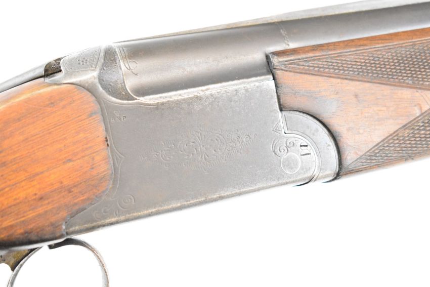 Baikal NK-12 12 bore over and under shotgun with engraved locks, underside, trigger guard and thumb lever, chequered semi-pistol grip and forend, double trigger and 28.5 inch barrels choked ½ and full, overall length 116cm, length of pull 38cm, serial number C0371. PLEASE NOTE THAT A VALID RELEVANT SHOTGUN CERTIFICATE IS REQUIRED TO VIEW OR PURCHASE THIS LOT AND FOR ALL SHOTGUNS OR RIFLES PLEASE ENSURE YOU HAVE THE RELEVANT CERTIFICATE BEFORE BIDDING.