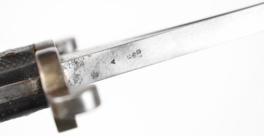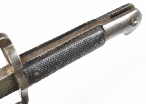 British 1863 pattern Whitworth bayonet with external leaf spring, some stamps to ricasso and 58cm yataghan blade. PLEASE NOTE: WE ARE NOT ABLE TO OFFER OUR USUAL POSTAGE SERVICE FOR THIS LOT
