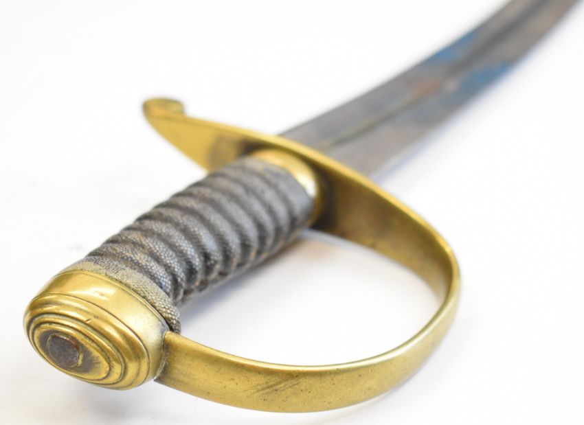Victorian Gloucestershire Police hanger / sword with button catch release, 58cm plain single edged blade and scabbard. PLEASE NOTE: WE ARE NOT ABLE TO OFFER OUR USUAL POSTAGE SERVICE FOR THIS LOT