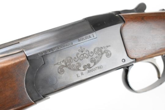 Amantino Miura I .410 over and under shotgun with chequered semi-pistol grip and forend, single trigger, vented top and central ribs and 26 inch barrels, overall length 109.5cm, length of pull 36.5cm, serial number 3268639-11. PLEASE NOTE THAT A VALID RELEVANT SHOTGUN CERTIFICATE IS REQUIRED TO VIEW OR PURCHASE THIS LOT AND FOR ALL SHOTGUNS OR RIFLES PLEASE ENSURE YOU HAVE THE RELEVANT CERTIFICATE BEFORE BIDDING.