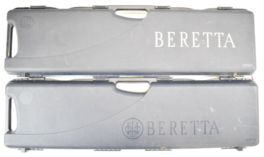 Two Beretta shotgun cases, both with fitted interiors for an over and under shotgun, each 96cm long.