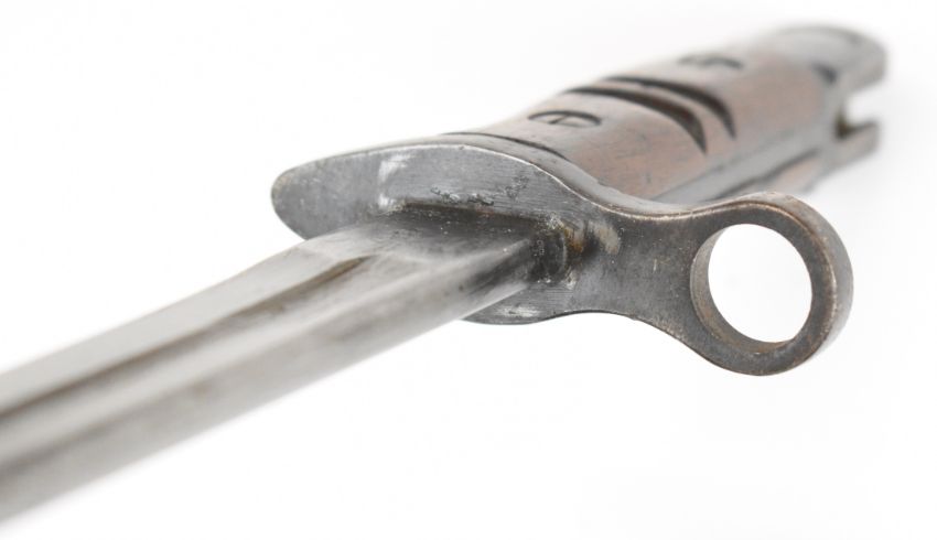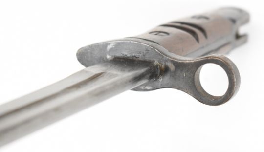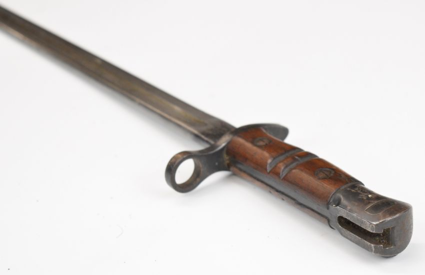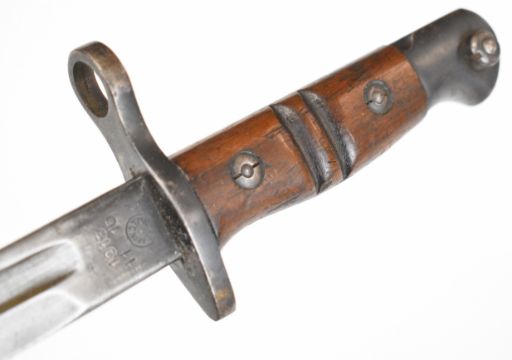 WW1 Remington bayonet with broad arrow, makers mark and date 1913 11 16 to ricasso,, 43cm fullered blade, scabbard. PLEASE NOTE: WE ARE NOT ABLE TO OFFER OUR USUAL POSTAGE SERVICE FOR THIS LOT