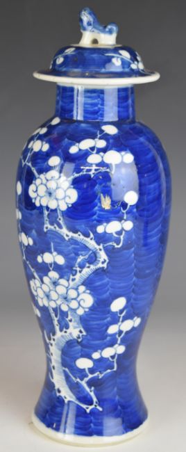 Two 19th / 20thC Chinese vases one covered, the smaller with four character mark to base and a pair of shallow dishes, one with impressed seal mark, tallest 32cm