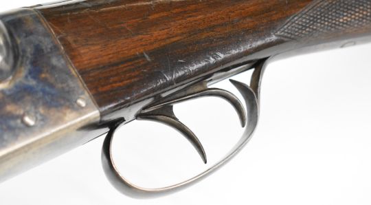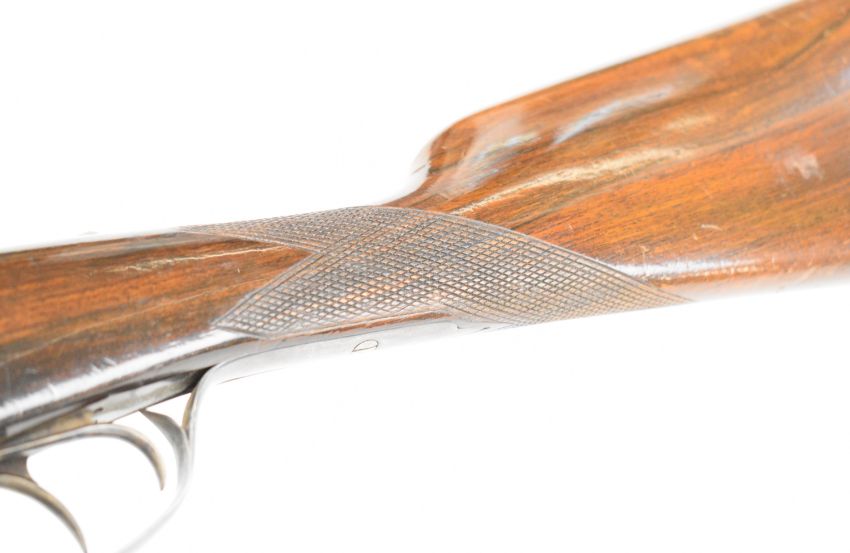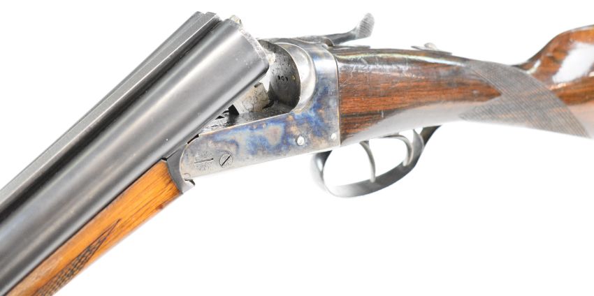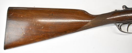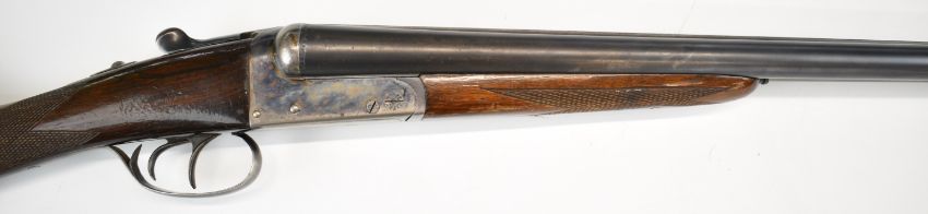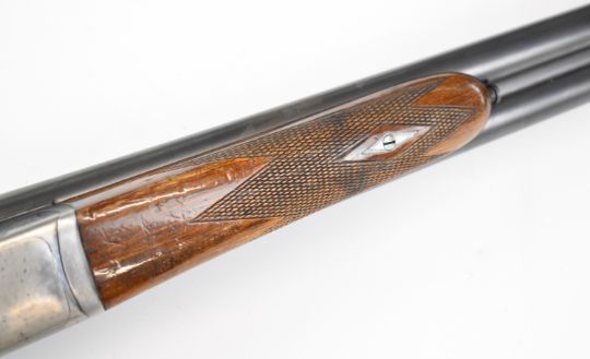 AYA Yeoman 12 bore side by side shotgun with chequered grip and forend, double trigger and named 28 inch barrels choked ½ and ¾, overall length 114.5cm, length of pull 37cm, serial number 235869. PLEASE NOTE THAT A VALID RELEVANT SHOTGUN CERTIFICATE IS REQUIRED TO VIEW OR PURCHASE THIS LOT AND FOR ALL SHOTGUNS OR RIFLES PLEASE ENSURE YOU HAVE THE RELEVANT CERTIFICATE BEFORE BIDDING.