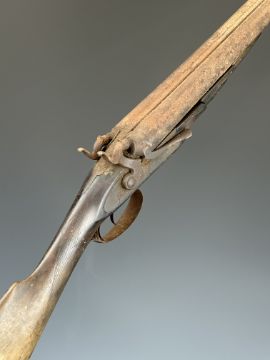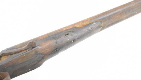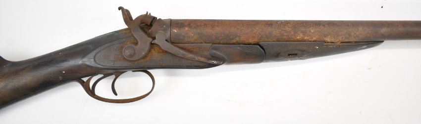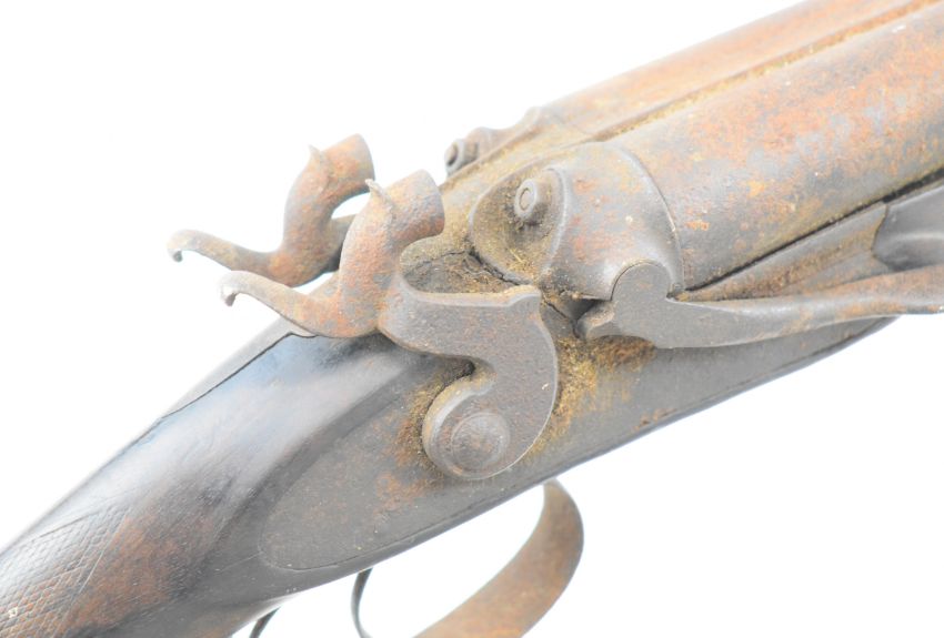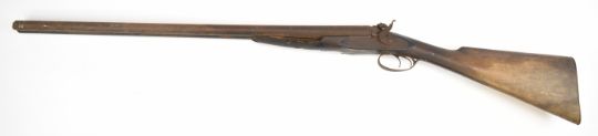John Rigby & Co J Needham's Patent 12 bore self half-cocking side by side bar-in-wood hammer action shotgun with named and engraved locks, engraved stylised dolphin hammers, chequered grip and forend, double trigger and 28 inch barrels, overall length 113cm, length of pull 35.5cm, serial number NVSN. PLEASE NOTE THAT A VALID RELEVANT SHOTGUN CERTIFICATE IS REQUIRED TO VIEW OR PURCHASE THIS LOT AND FOR ALL SHOTGUNS OR RIFLES PLEASE ENSURE YOU HAVE THE RELEVANT CERTIFICATE BEFORE BIDDING.