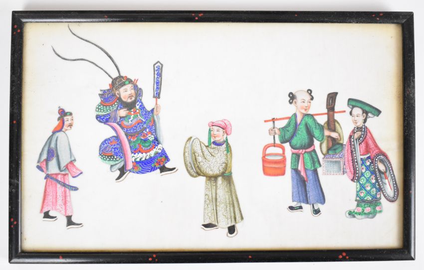 Set of eleven 19th / 20thC Chinese watercolours on rice paper of various court scenes including processions, prisoners, festivals and exotic birds, all framed and glazed, largest 19 x 32cm, majority 18 x 30cm