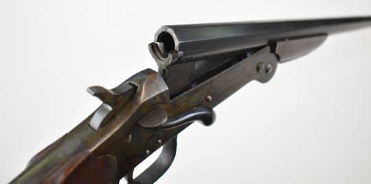 Modern Arms Co of London & Bromley .410 single barrelled folding poacher's shotgun with 29.5 inch part-octagonal barrel, overall length 1113cm, length of pull 36cm, serial number 554. PLEASE NOTE THAT A VALID RELEVANT SHOTGUN CERTIFICATE IS REQUIRED TO VIEW OR PURCHASE THIS LOT AND FOR ALL SHOTGUNS OR RIFLES PLEASE ENSURE YOU HAVE THE RELEVANT CERTIFICATE BEFORE BIDDING.