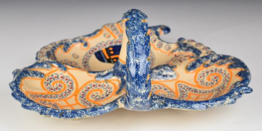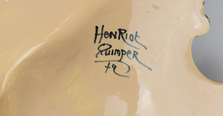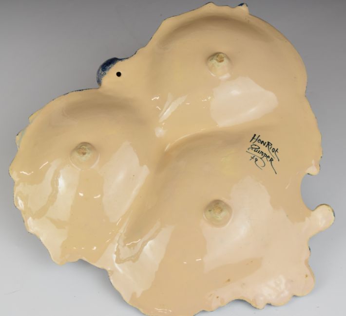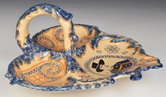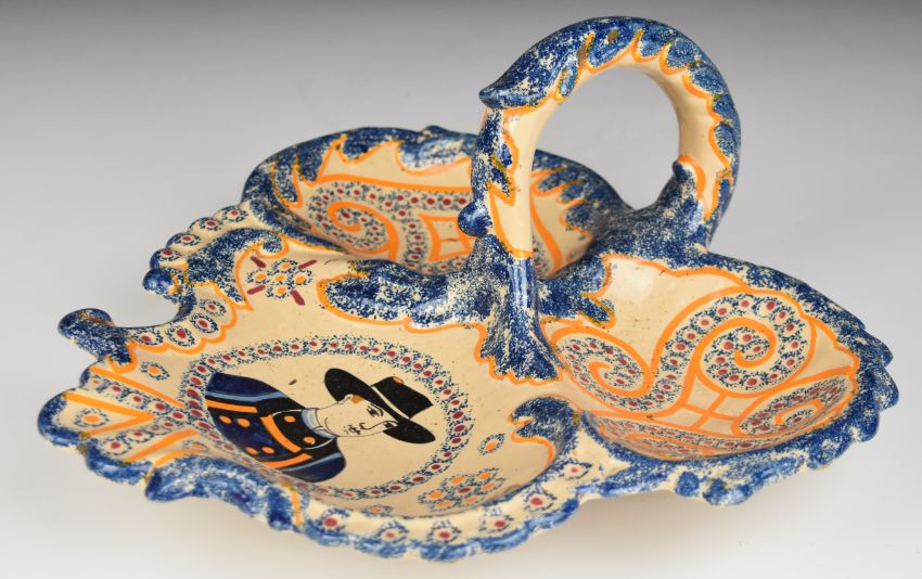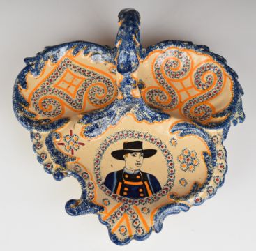 Henri Quimper trefoil basket with portrait decoration, W32 x H16cm