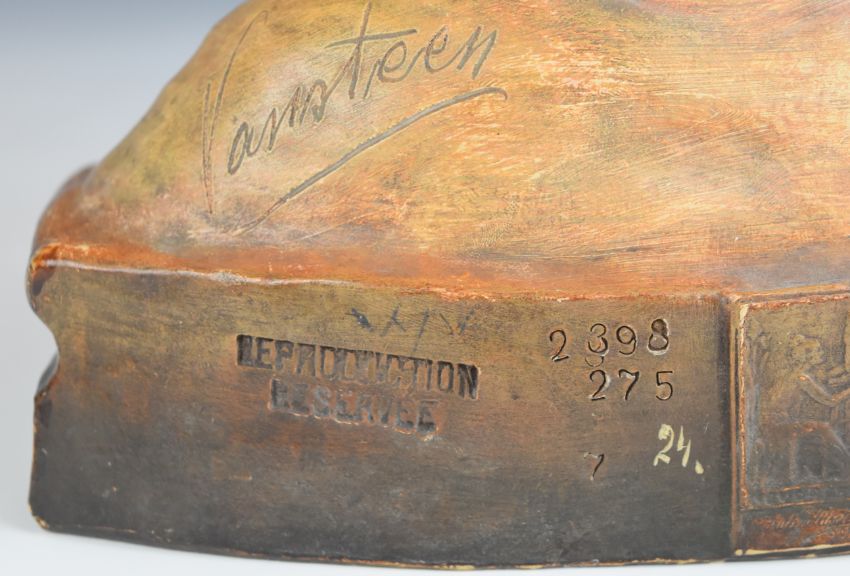 Goldscheider Art Nouveau bust of a young Dutch / Austrian girl, signed Vansteen verso and impressed 2398, 275 and 7, H23cm