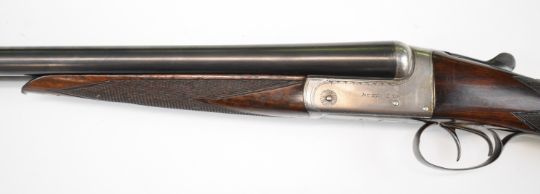 Butes Ltd of London 20 bore side by side shotgun with named and border engraved locks, border engraved underside, trigger guard, top plate, thumb lever and fences, chequered grip and forend, vacant cartouche to the underside of the stock, double trigger and named 28 inch barrels choked cylinder and ¼, overall length 113.5cm, length of pull 38cm, serial number 4399.  PLEASE NOTE THAT A VALID RELEVANT SHOTGUN CERTIFICATE IS REQUIRED TO VIEW OR PURCHASE THIS LOT AND FOR ALL SHOTGUNS OR RIFLES PLEASE ENSURE YOU HAVE THE RELEVANT CERTIFICATE BEFORE BIDDING.