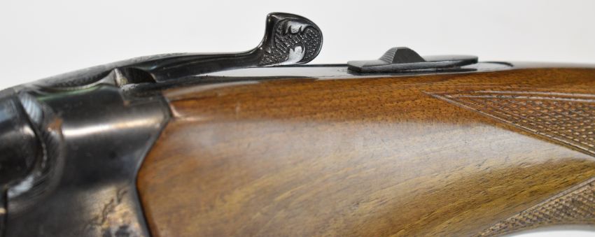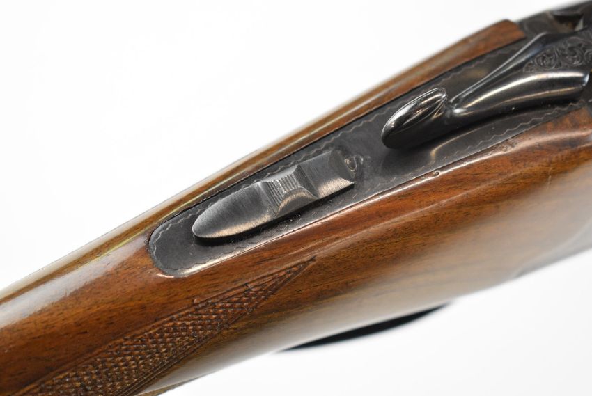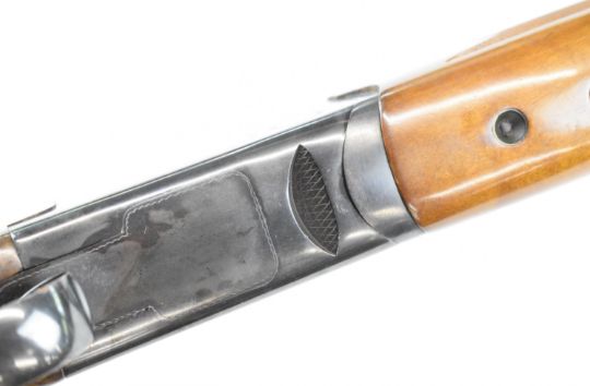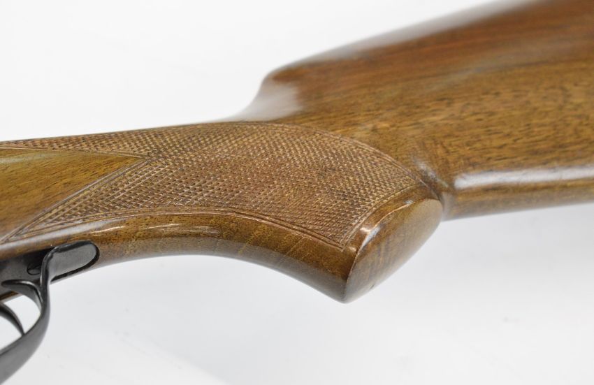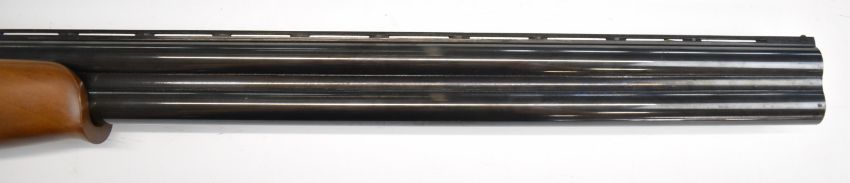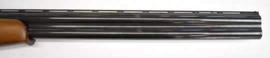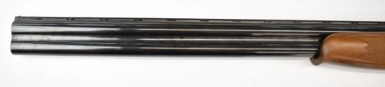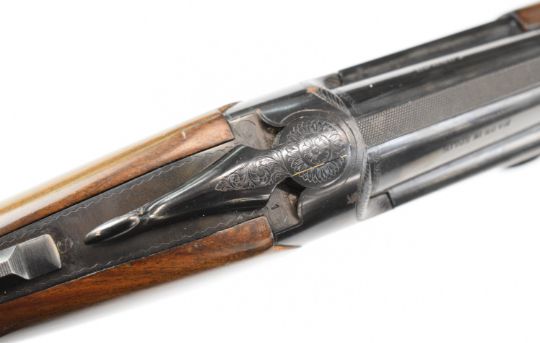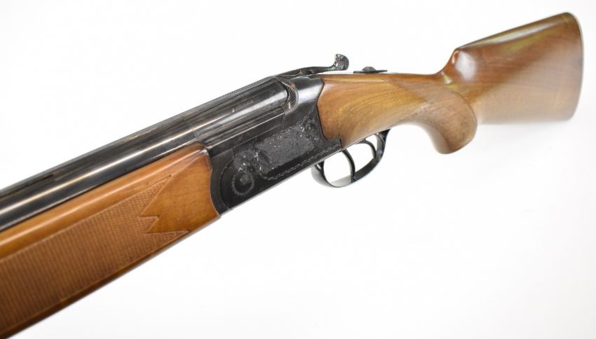Lanber 12 bore over and under shotgun with border engraved locks, underside, top plate and thumb lever, chequered semi-pistol grip and forend, double trigger, vented top rib and 27.5 inch barrels choked ½ and ¼, overall length 112.5cm, length of pull 37cm, serial number LG149208. PLEASE NOTE THAT A VALID RELEVANT SHOTGUN CERTIFICATE IS REQUIRED TO VIEW OR PURCHASE THIS LOT AND FOR ALL SHOTGUNS OR RIFLES PLEASE ENSURE YOU HAVE THE RELEVANT CERTIFICATE BEFORE BIDDING.