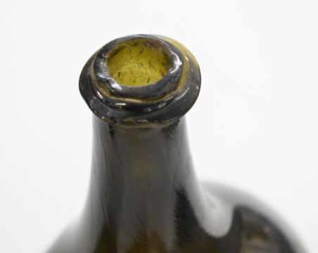 Two 18thC hand blown green glass bottles, largest 19cm tall.