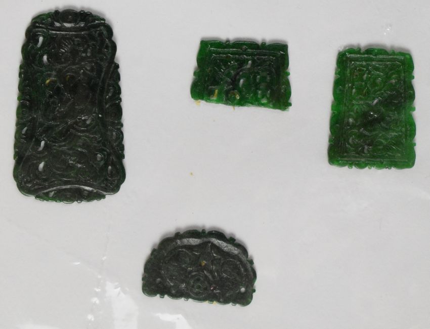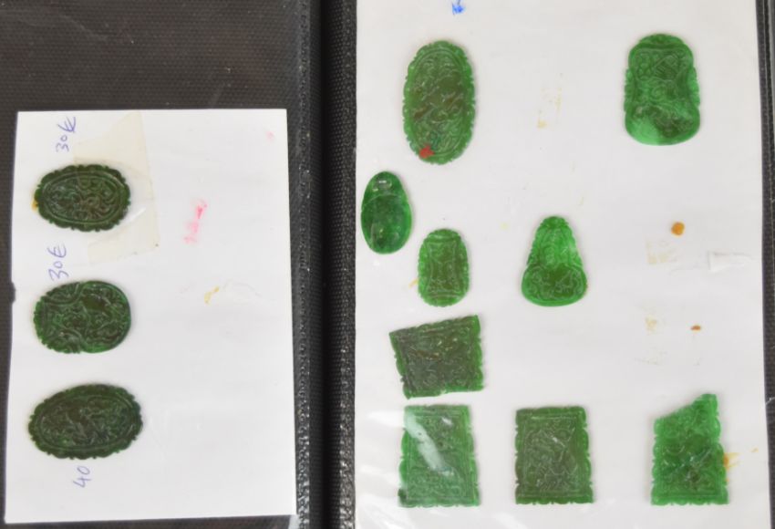 A collection of over 70 carved jade pendants and plaques including rabbits, leaves, animals, fruit, dragon, etc, largest 4.2 x 2.8cm, smallest 0.9 x 0.5cm