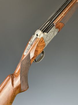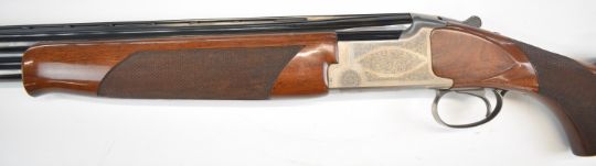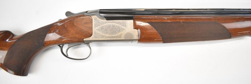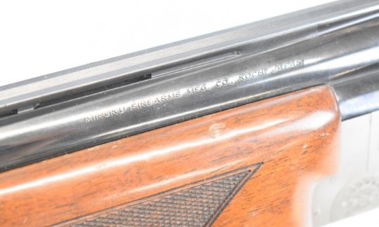Miroku MK-70 Sport 12 bore over and under ejector shotgun with engraved locks, thumb lever and underside, chequered semi-pistol grip and forend, single trigger, vented top rib and 30 inch multi-choke barrels, overall length 122cm, length of pull 39cm, serial number 72578ZW, with three additional chokes and choke key. PLEASE NOTE THAT A VALID RELEVANT SHOTGUN CERTIFICATE IS REQUIRED TO VIEW OR PURCHASE THIS LOT AND FOR ALL SHOTGUNS OR RIFLES PLEASE ENSURE YOU HAVE THE RELEVANT CERTIFICATE BEFORE BIDDING.