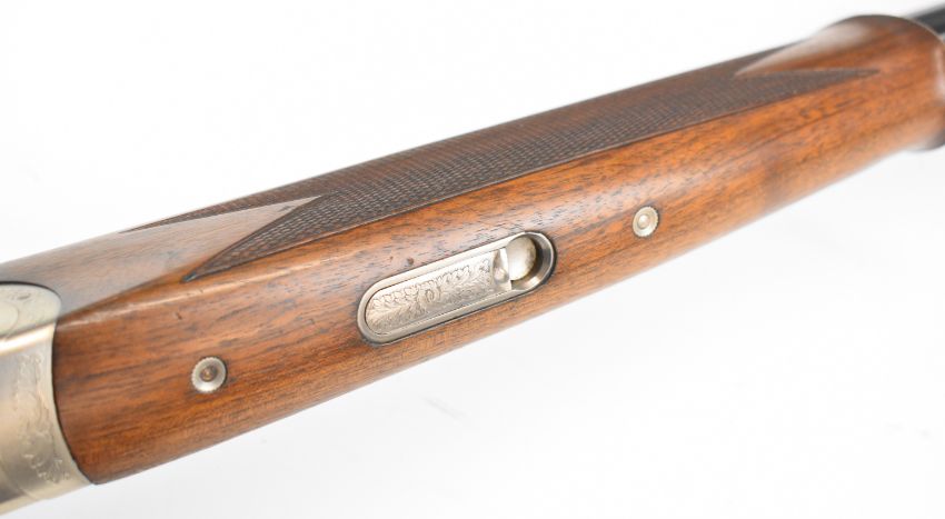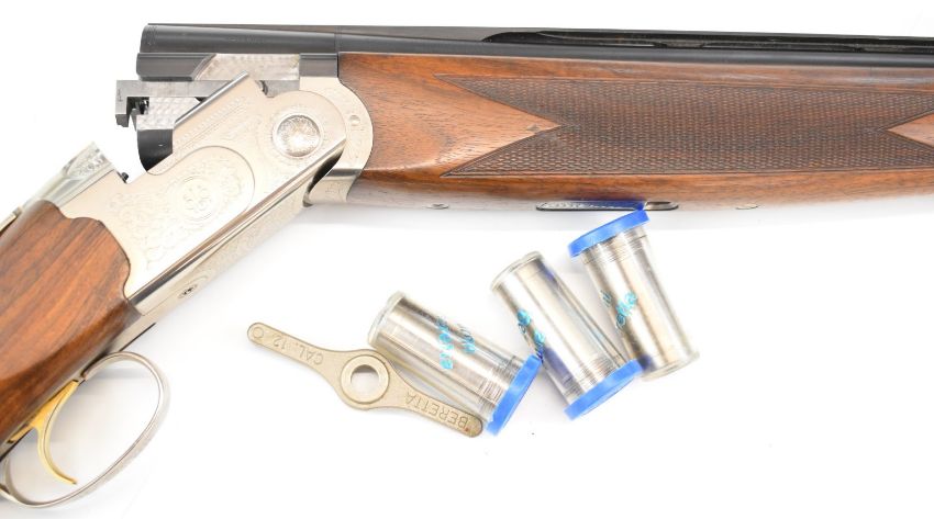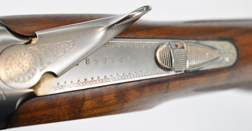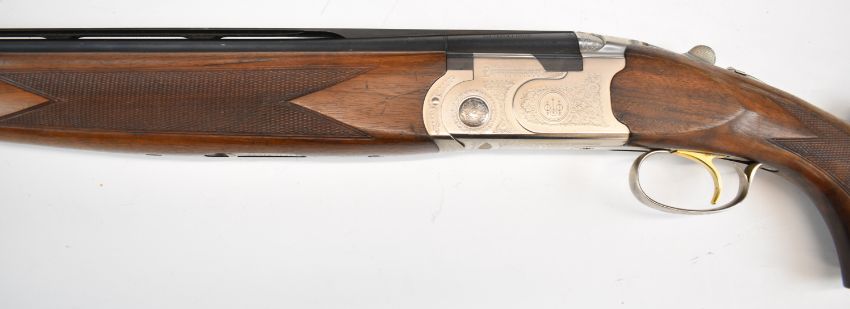 Beretta Silver Pigeon Sporting 12 bore over and under ejector shotgun with engraved locks, underside, trigger guard, top plate and thumb lever, chequered semi-pistol grip and forend, single trigger, vented top rib and 29.5 inch multi-choke barrels, overall length 120cm, length of pull 37.5cm, serial number L85979B, with three additional chokes and choke key. PLEASE NOTE THAT A VALID RELEVANT SHOTGUN CERTIFICATE IS REQUIRED TO VIEW OR PURCHASE THIS LOT AND FOR ALL SHOTGUNS OR RIFLES PLEASE ENSURE YOU HAVE THE RELEVANT CERTIFICATE BEFORE BIDDING.