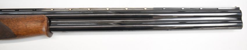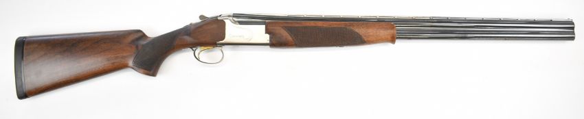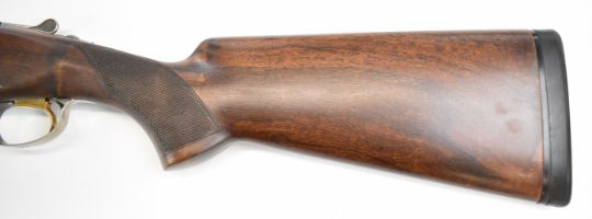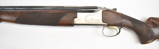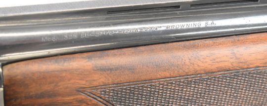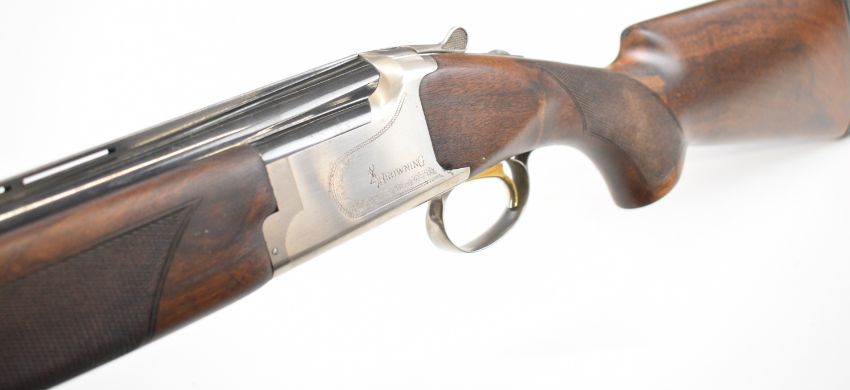 Browning 325 Grade II 12 bore over and under ejector shotgun with named and engraved locks, underside and trigger guard, chequered semi-pistol grip and forend, single trigger, vented top rib and 27.5 inch barrels choked ¼ and ½, overall length 114.5cm, length of pull 37.5cm, serial number 42591NX. PLEASE NOTE THAT A VALID RELEVANT SHOTGUN CERTIFICATE IS REQUIRED TO VIEW OR PURCHASE THIS LOT AND FOR ALL SHOTGUNS OR RIFLES PLEASE ENSURE YOU HAVE THE RELEVANT CERTIFICATE BEFORE BIDDING.