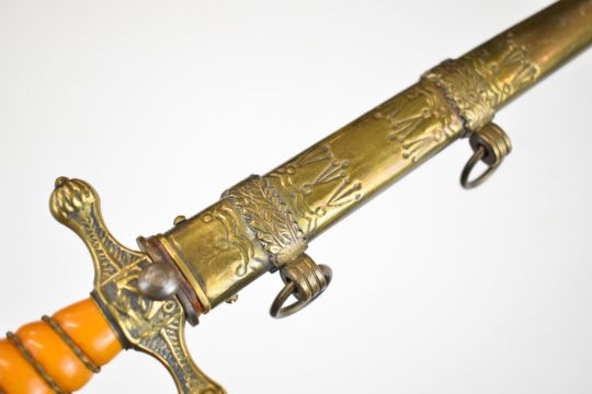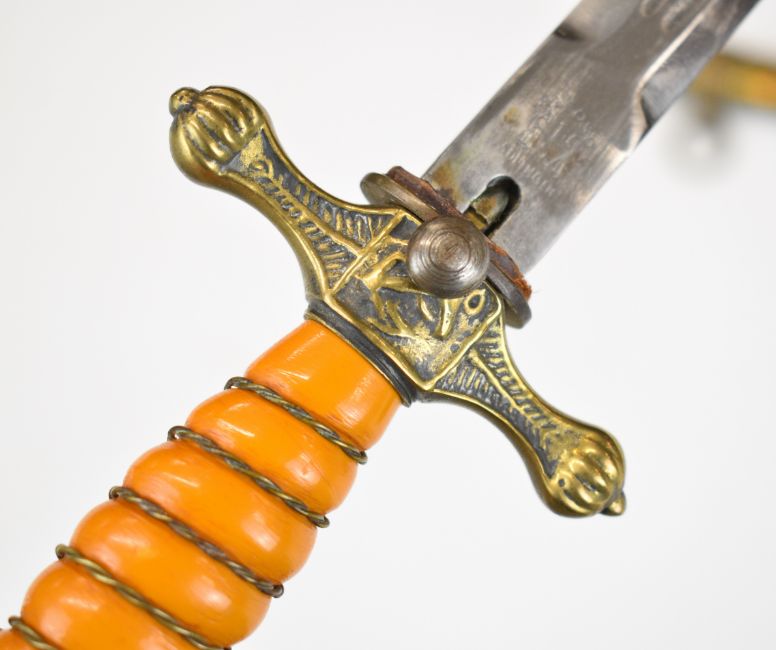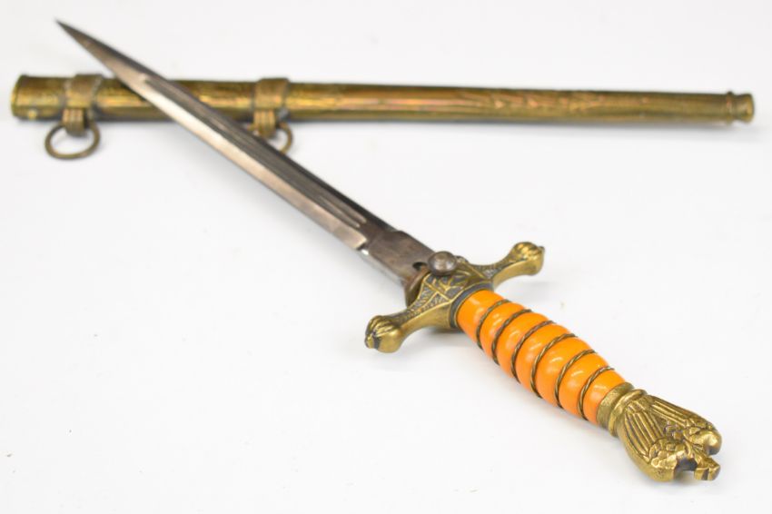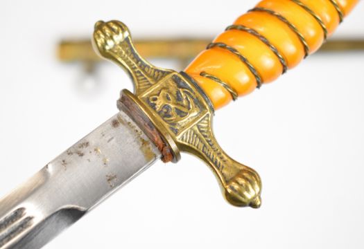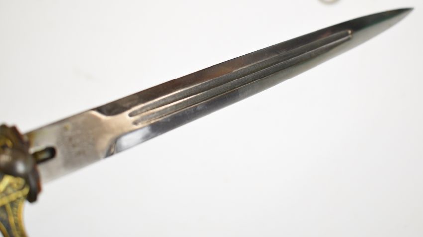 German WW2 Nazi Third Reich dagger blade marked Alcosco Solingen and maker's mark, the pommel, cross guard, grip and scabbard not contemporary to blade. PLEASE NOTE: WE ARE NOT ABLE TO OFFER OUR USUAL POSTAGE SERVICE FOR THIS LOT