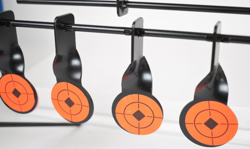 Three air rifle or pistol metal self-setting swing targets, all unused in original boxes.