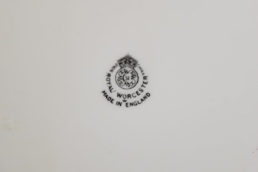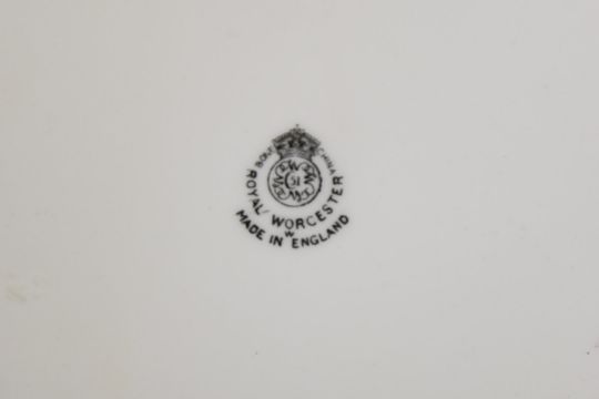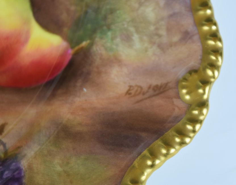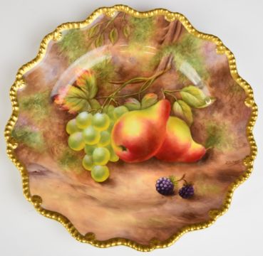 Royal Worcester painted fruit cabinet plate with gadrooned and gilded rim, signed Jones, diameter 22.5cm