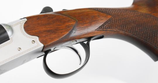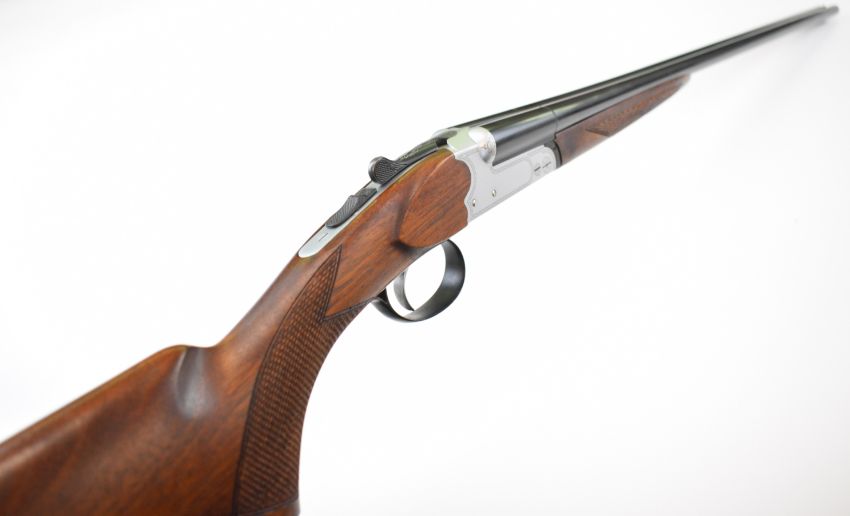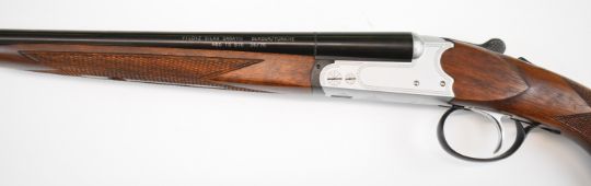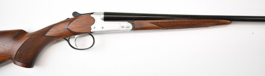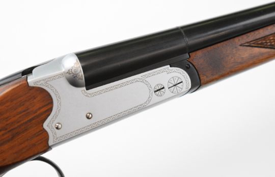 Yildiz TSE .410 side by side shotgun with laser engraved lock, underside, trigger guard and thumb lever, chequered semi-pistol grip and forend, single trigger and named 28 inch barrels, overall length 113.5cm, length of pull 36cm, serial number 3026. PLEASE NOTE THAT A VALID RELEVANT SHOTGUN CERTIFICATE IS REQUIRED TO VIEW OR PURCHASE THIS LOT AND FOR ALL SHOTGUNS OR RIFLES PLEASE ENSURE YOU HAVE THE RELEVANT CERTIFICATE BEFORE BIDDING.