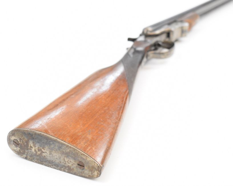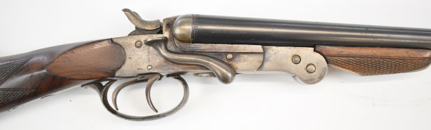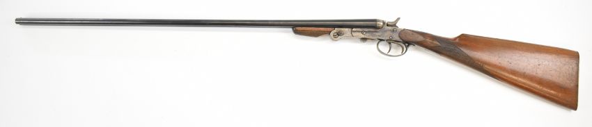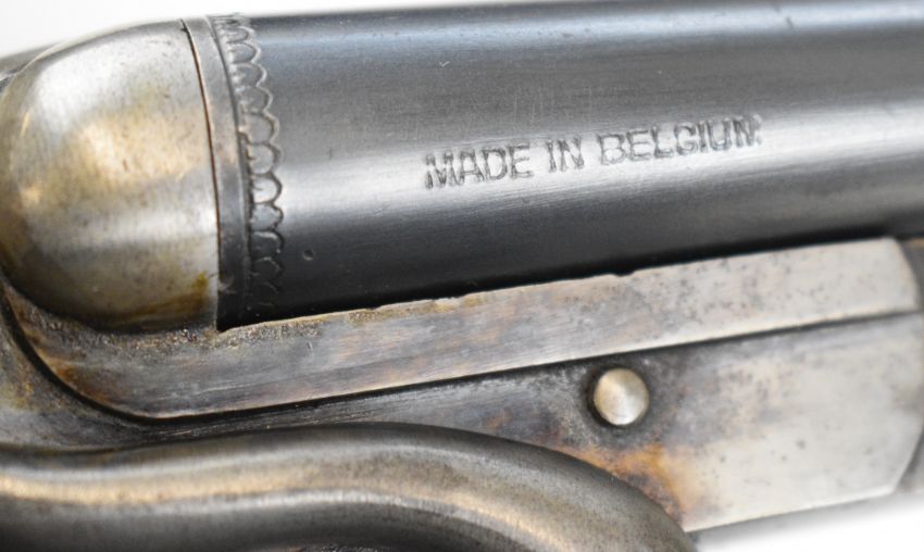 Belgian .410 side by side hammer action folding poacher's shotgun with chequered grip and forend, double trigger and 28 inch barrels, overall length 111cm, length of pull 37cm, serial number 38309. PLEASE NOTE THAT A VALID RELEVANT SHOTGUN CERTIFICATE IS REQUIRED TO VIEW OR PURCHASE THIS LOT AND FOR ALL SHOTGUNS OR RIFLES PLEASE ENSURE YOU HAVE THE RELEVANT CERTIFICATE BEFORE BIDDING.
