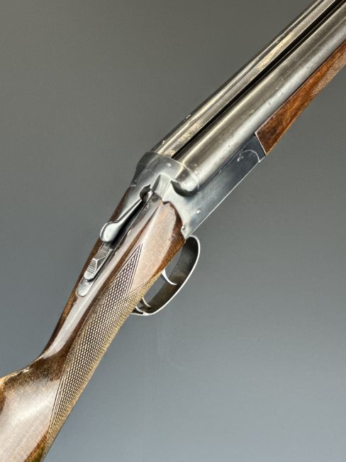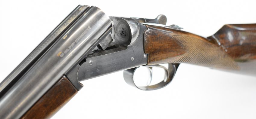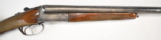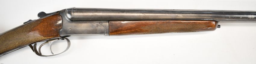 Bioto 12 bore side by side shotgun with chequered grip and forend, double trigger and 28 inch barrels choked ½ and ¾, overall length 113.5cm, length of pull 37.5cm, serial number 225434. PLEASE NOTE THAT A VALID RELEVANT SHOTGUN CERTIFICATE IS REQUIRED TO VIEW OR PURCHASE THIS LOT AND FOR ALL SHOTGUNS OR RIFLES PLEASE ENSURE YOU HAVE THE RELEVANT CERTIFICATE BEFORE BIDDING.