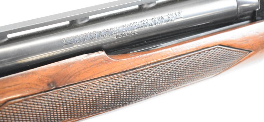 Winchester Ranger 120 12 bore 3-shot pump-action shotgun with chequered semi-pistol grip and forend and 28.5 inch multi-choke barrel, overall length 124cm, length of pull 35.5cm, serial number L1276440. PLEASE NOTE THAT A VALID RELEVANT SHOTGUN CERTIFICATE IS REQUIRED TO VIEW OR PURCHASE THIS LOT AND FOR ALL SHOTGUNS OR RIFLES PLEASE ENSURE YOU HAVE THE RELEVANT CERTIFICATE BEFORE BIDDING.